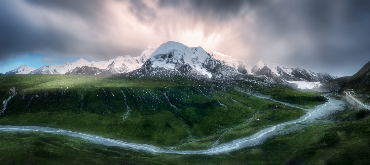 8月才入夏的高原,纷飞小雪后的阴云之间,神山巍然耸立。 大疆御2 pro接片